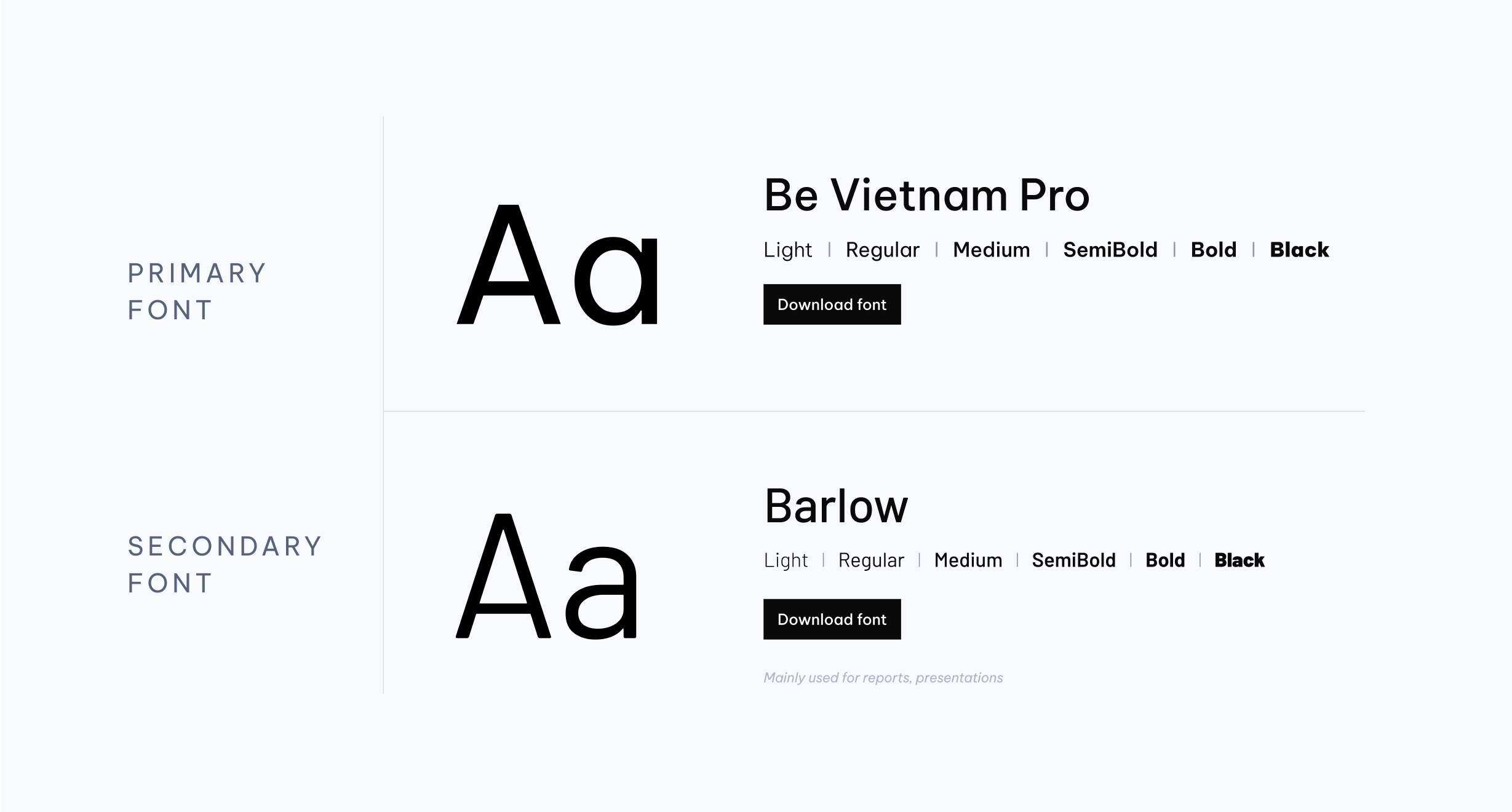 Barlow is the secondary typeface – mainly used for reports, presentations, and supporting materials where versatility and legibility matter most.