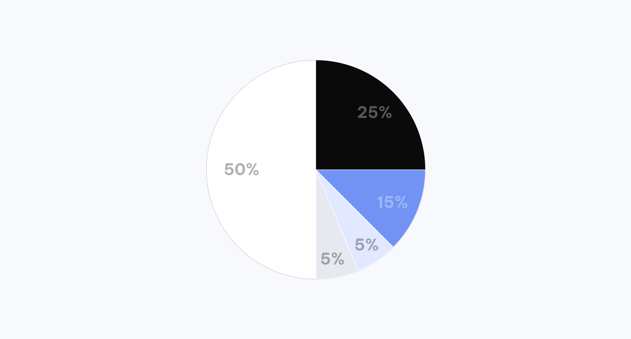 White dominates at 50% to maintain spaciousness, followed by 25% black for structure, 15% blue for emphasis, and 10% soft tones for gentle accents.