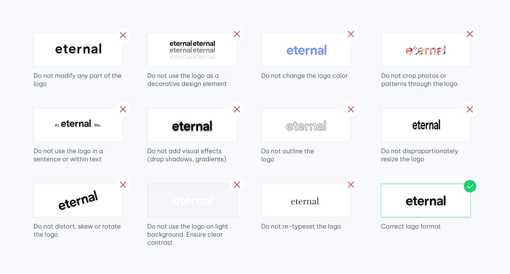 To maintain a strong visual identity and uphold the integrity of the Eternal brand, the logo must always be applied with care and intention.
